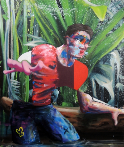 Man with canoe - 2025, huile sur toile,